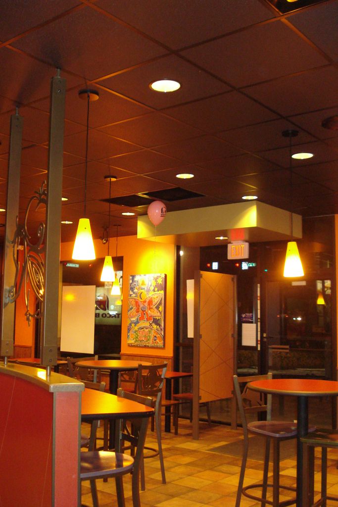 Taco Bell in Stowe OH. Armstrong Fine Fissured Black 2x2 tile was used for the ceiling. The end result: a stunning new look for this taco haven.